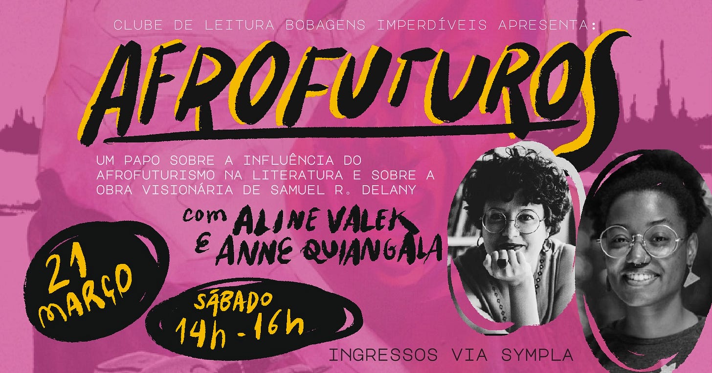 Você pode vir para aprender mais sobre afrofuturismo, saber mais sobre a obra de Delany e participar de um papo bem enriquecedor sobre literatura.